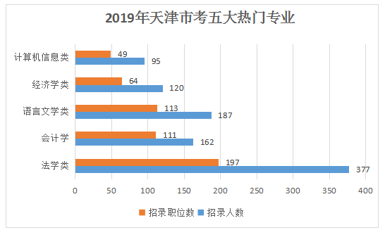 (1)熱門專業(yè)好報考,但競爭力大。據(jù)2019年天津公務(wù)員考試報考數(shù)據(jù)顯示,報考人數(shù)最多十大部門的崗位,幾乎都是招考一些熱門專業(yè)或者是不限專業(yè)的職位;
