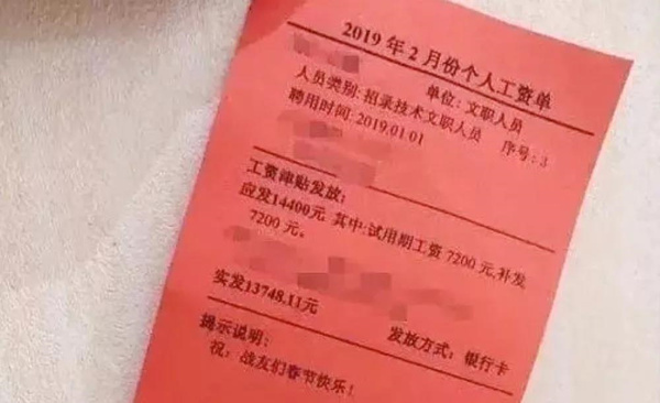 上圖為網(wǎng)友曬的工資單,軍隊文職人員的福利待遇基本等同于現(xiàn)役軍官,普遍高于地方公務員。